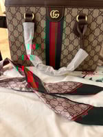 A timeless Gucci classic, this GG Supreme tote is the perfect blend of heritage design and everyday luxury. Crafted in the iconic beige/ebony GG monogram canvas, it’s accented with dark brown leather trim and finished with Gucci’s signature green and red Web stripe down the center. The gold-tone Double G logo adds a refined touch, making this tote both sophisticated and instantly recognizable.